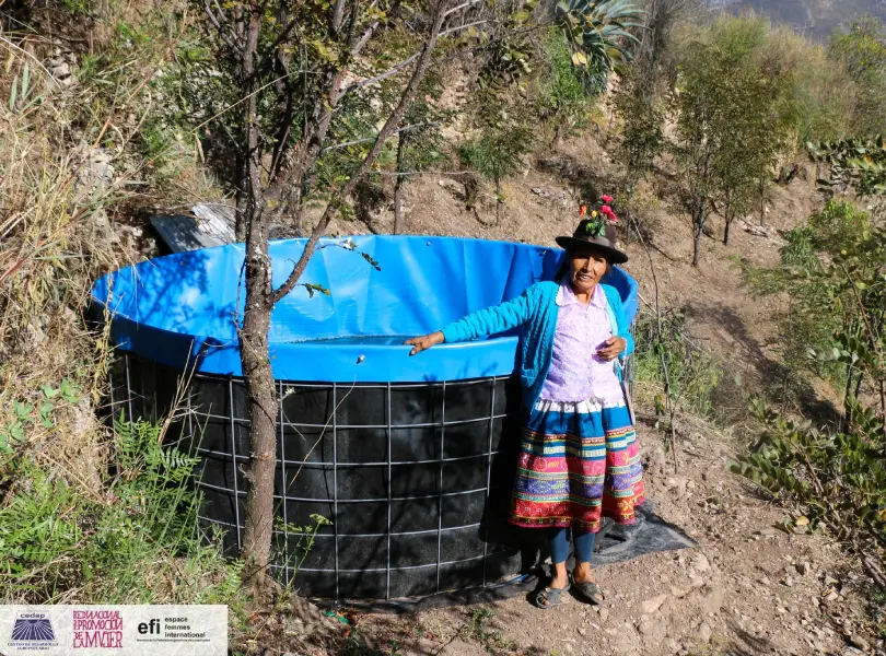 Se instalan geotanques para asegurar agua de riego en los fitotoldos, mejorando la producción de hortalizas y la nutrición familiar frente al cambio climático.